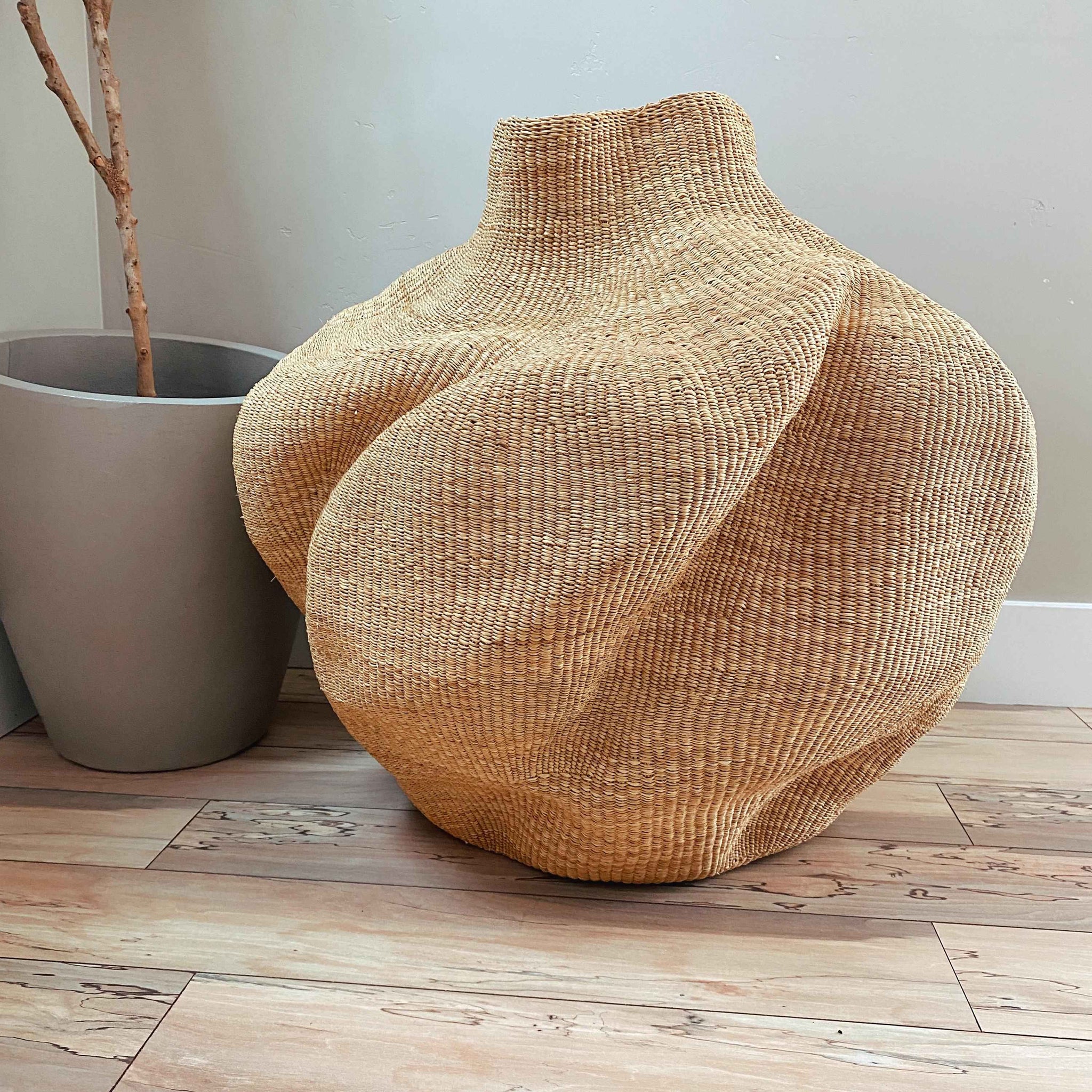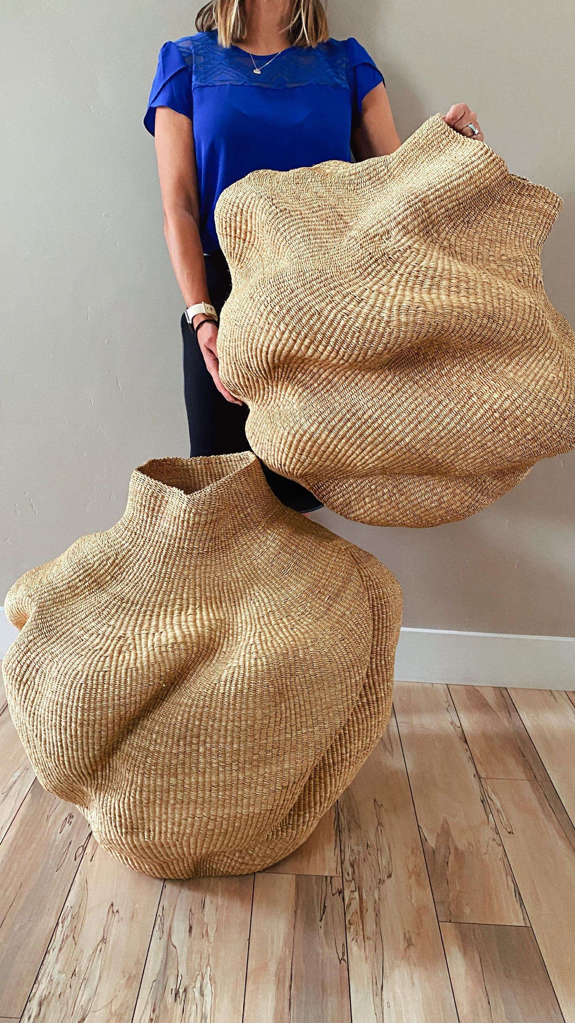 Handcrafted by master weavers in Bolgatanga, Ghana, each Bolga Wave Basket is a sculptural décor piece that showcases exceptional skill and artistry. Forming the intricate wave shape requires advanced weaving techniques and years of experience, making every piece truly one of a kind. Designed to bring texture, movement, and timeless character into your space, these baskets blend traditional craftsmanship with modern design.
